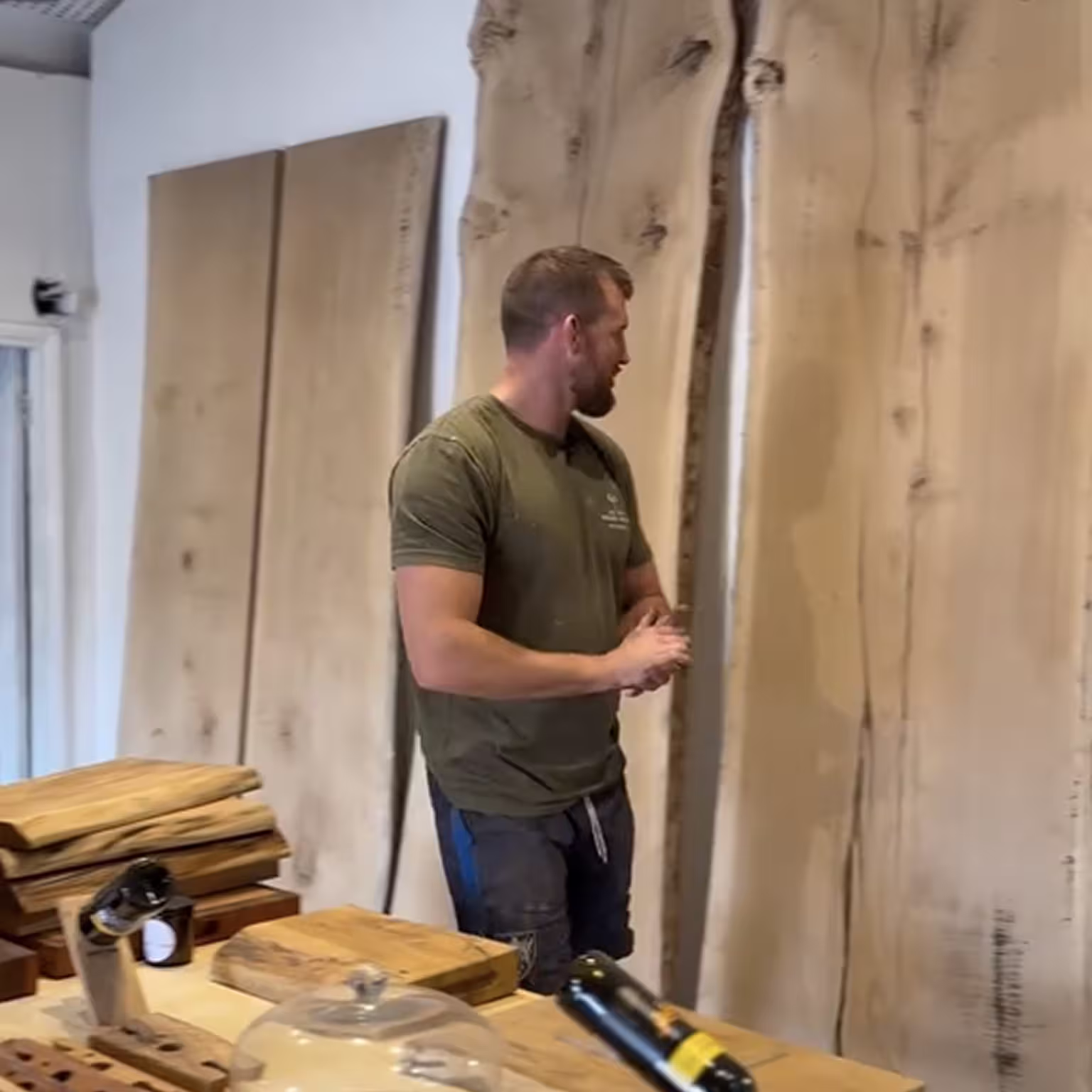 The Elm dining table got clean lines for family meals. The Oak cookie table kept its natural edge for that raw, organic look. Throughout the 90 days, the client got weekly video updates showing their outdoor space taking shape.