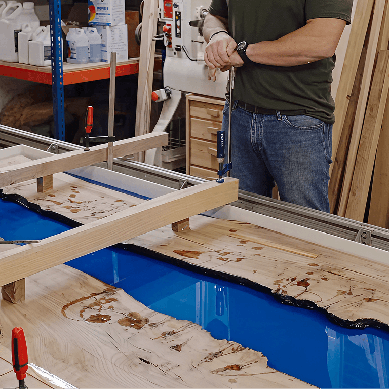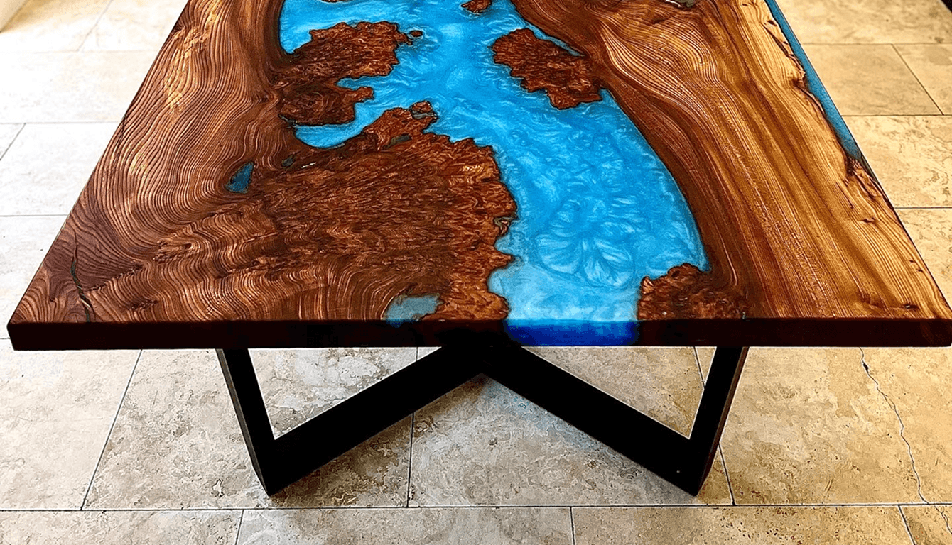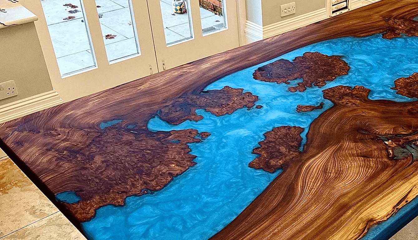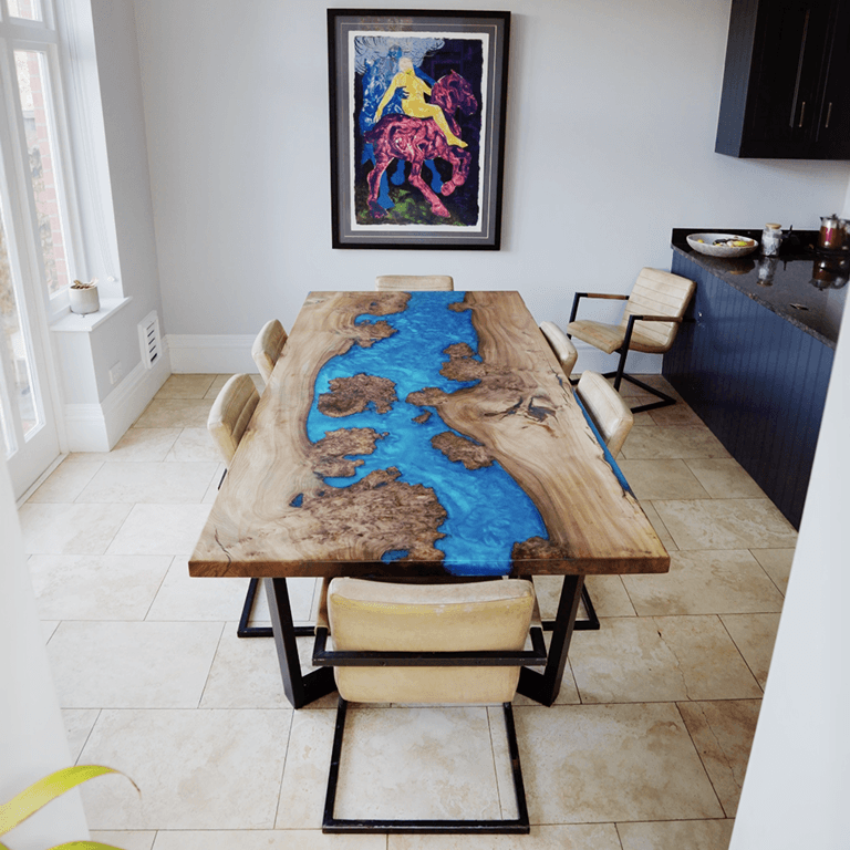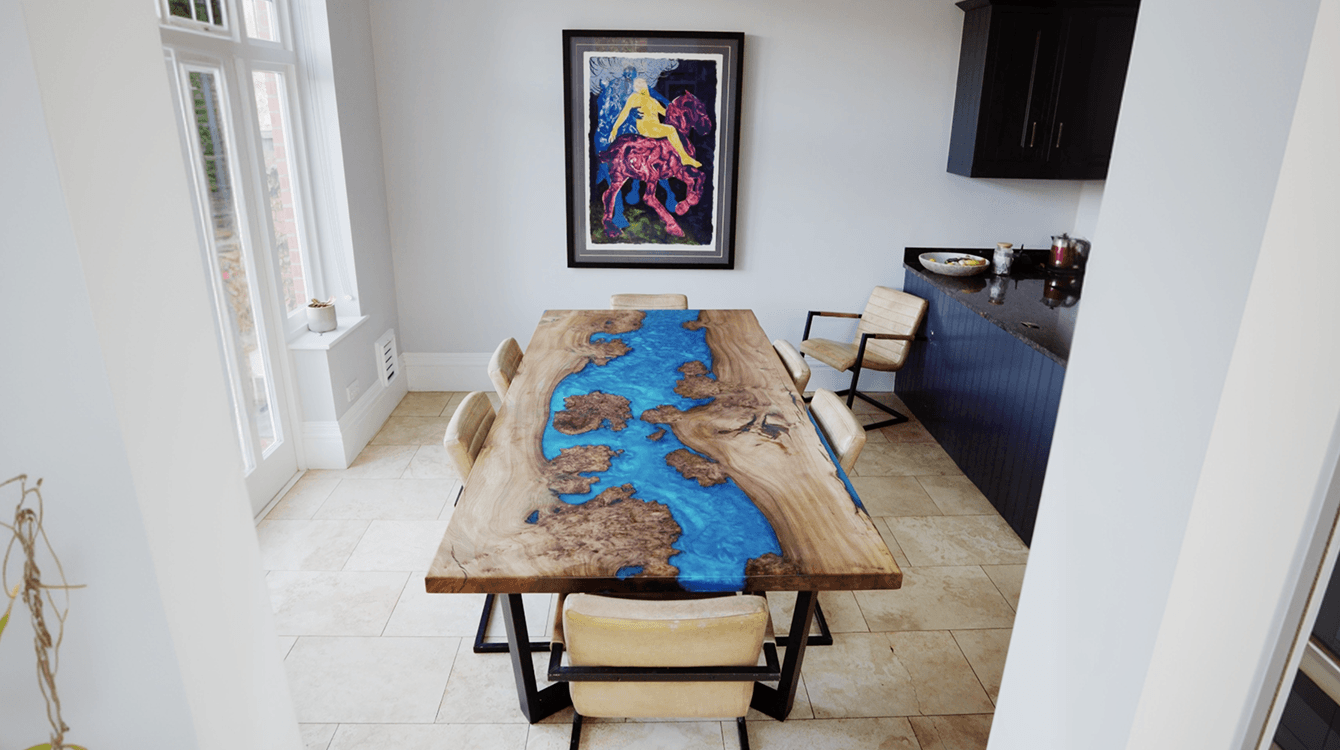 Ian wanted a dining table that did more than seat people. It needed to be a proper talking point, something guests would clock the moment they walked into the kitchen and ask about before they'd even sat down. He'd seen river tables before and was drawn to the drama of them, the sculptural quality. But he wanted something with depth and tone to it, not just a showpiece. It had to fit the kitchen, anchor the room and hold its own every single day.