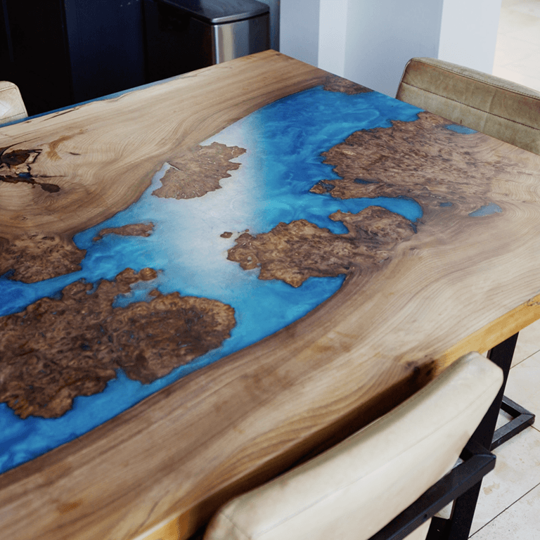 Ian got exactly what he came for, a centrepiece that earns the attention it gets. The Scottish Burr Elm draws people in, the resin river gives it movement, and the steel base keeps it grounded in the space around it. It seats the whole family, fits the kitchen it was built for, and looks like nothing else on the market because it isn't.