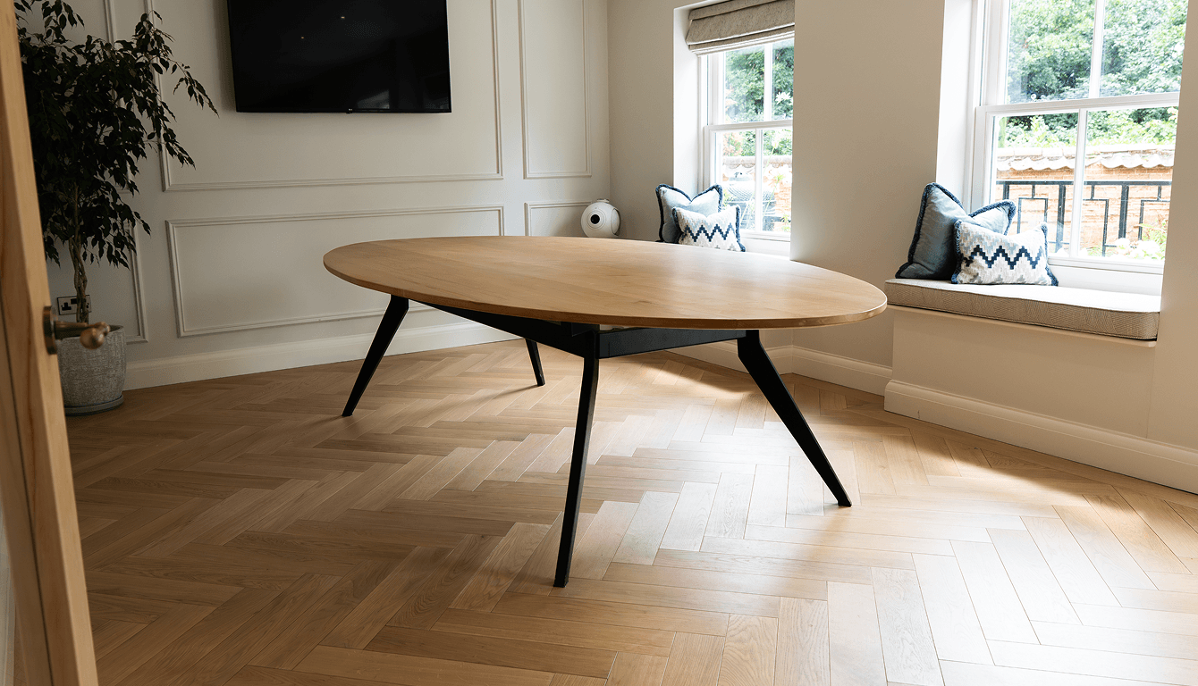 The Jones' wanted a table that worked for everything, relaxed weeknight dinners and proper social gatherings. It needed to feel light and open, nothing heavy or imposing. Sleek, thin legs that stayed out of the way of whoever was sitting at them. And it had to sit comfortably in a bright, contemporary interior without fighting for attention. Simple brief. But getting simplicity right takes real skill.