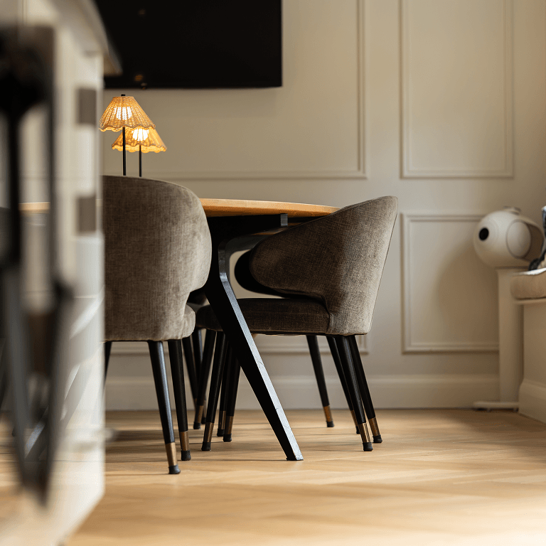 A table that earns its place without demanding attention. It seats the whole family comfortably, works just as well for a quiet dinner for two, and looks right at home in a space that was designed to feel light and easy. Understated, precise and built to last well beyond the trend that inspired it.